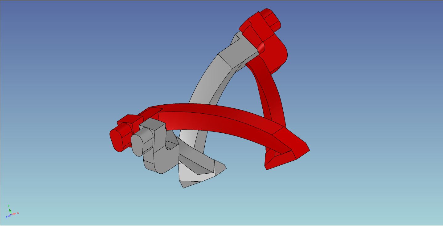 Even though this project was done over 13 years ago I thought I would pull it up and create a few more images. The image below shows is the basic helical shape of connector 7 in the history. The purple is a reference to the rotated linked image indicating that will also be affected by any changes. It was my first project with extensive use of the helix function in IronCAD. It was incredibly easy and fun.